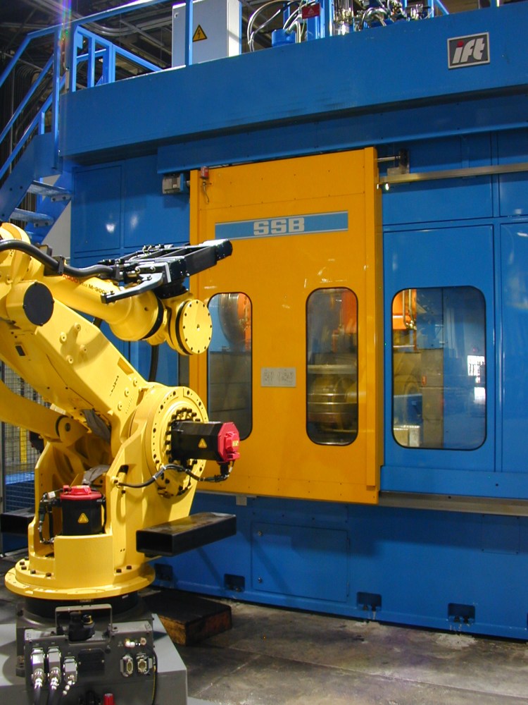 The cast flow forming process is a proven near/to net shape forming technology. The wheel rim pre-form is flow formed to the precise shape between a rotating mandrel and three CNC-controlled rollers. This allows for the manufacturing of larger and higher quality wheels with existing equipment.